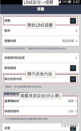 2、 LINE 與 Facebook 設定中開啟「通知」選項