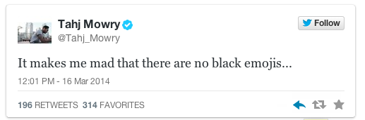 流行歌手兼演員的Tahj Mowry也抱怨Apple的Emoji 表情符號應用程式缺乏種族多樣性。