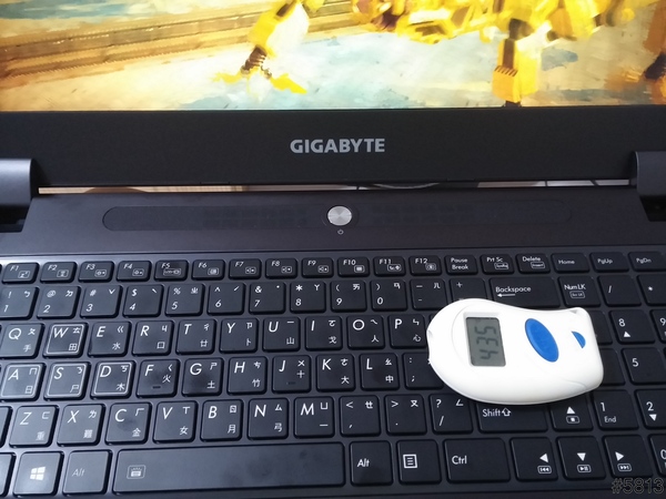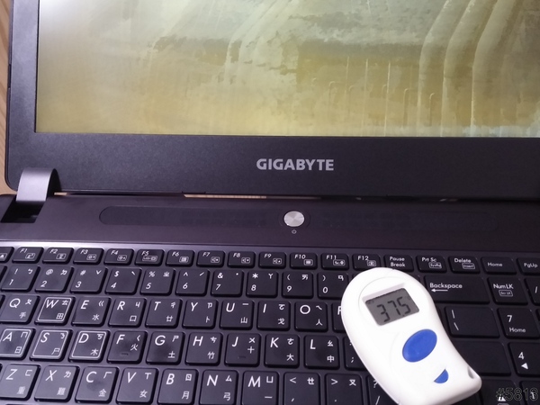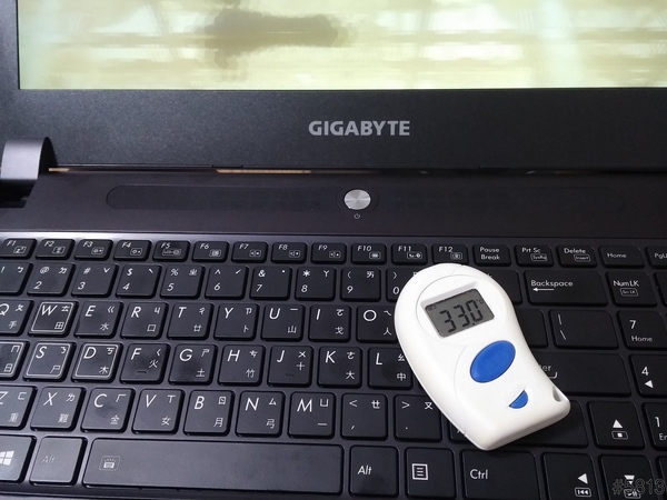 要如何測試散熱能力呢?,這邊想到的就是讓它一直高性能運作,此時風扇會提高轉速(其實還滿大聲的),這時拿簡單的紅外線測溫計,測量NB上較熱的部份。