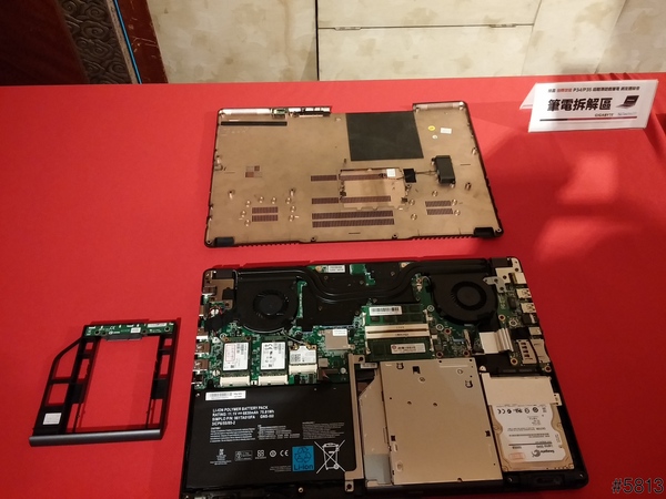 這是把背板拆開後硬體的配置(這是會場照片,試用的就沒拆了),可以看到之前說明的一些特色,如雙風扇、抽取式光碟機…等。