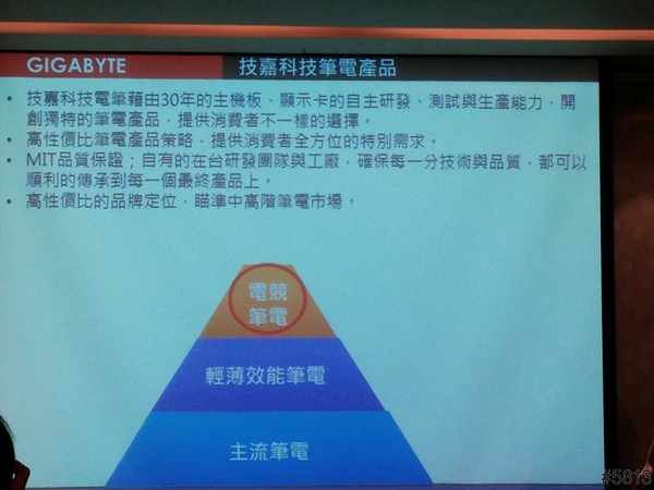 當然一開始總是要介紹一下公司,技嘉一開始較熟為人知的是板卡產品,因為產業愈趨成熟,產品也多元化了,NB當然也是多元化的產品之一。