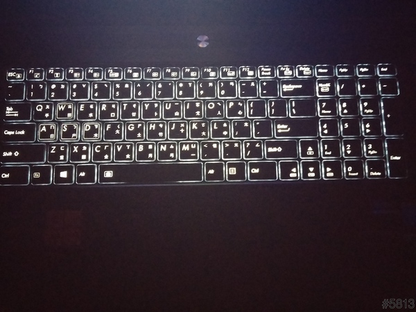 這是鍵盤配置,是有帶數字鍵的,觸控板的區域也是非常大。中間圓鍵則是開機鍵,二旁剛開始以為是喇叭孔,但實際是散熱孔。