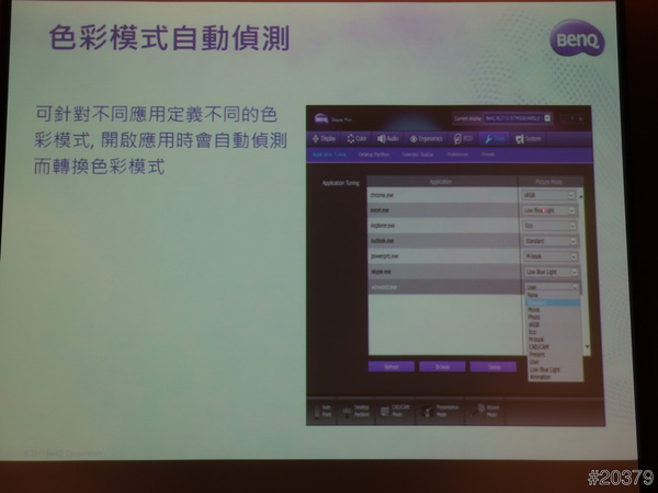 BenQ BL2710PT 最佳簡報模式可類比投影機的色彩、亮度和對比度,讓投影機與螢幕間的畫面顯示差異變得更小。方便於設計師或任何有需求展演色彩作品和完美的演示線稿的使用者,當然就能更大膽秀出您的設計作品吧!