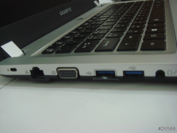 圖: 機身左側的I/O、由左至右是 筆電鎖、網路孔、VGA、USB3.0*2、2合1耳麥孔