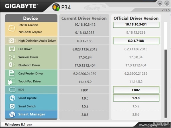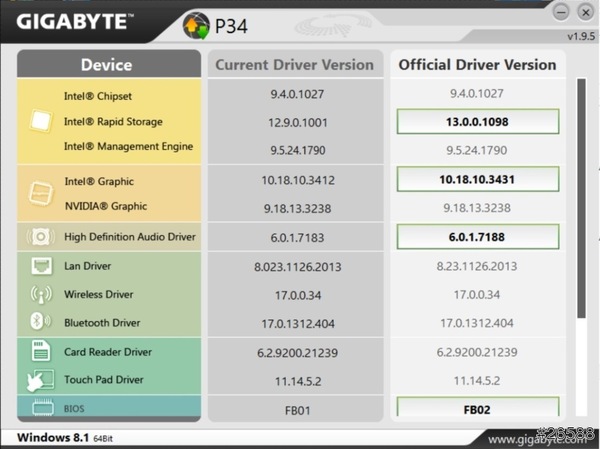 在這能一次看完全部的硬體驅動程式版本,若有更新檔發佈會直接顯示在此,使用者只須點一下便可開始更新,不用像以前一樣要一個個注意。
