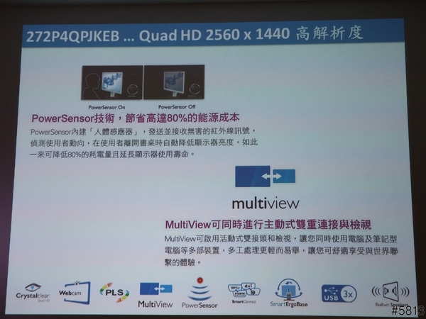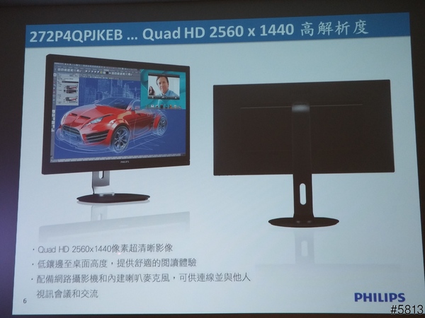 第三款是27"產品,強調商務性,2K的面板,加上攝像頭與喇叭,方便視訊交談