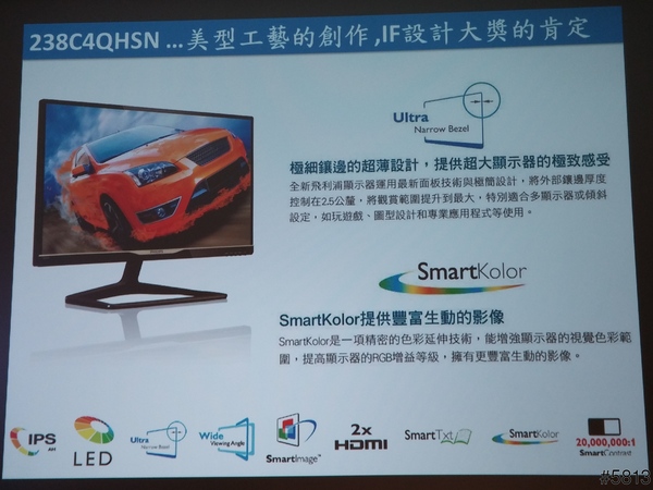 除了超薄外,並採用IPS面板,加上自家的SMARTKOLOR影像技術,使色彩更真實