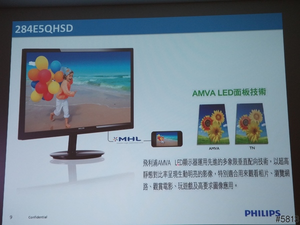 這是28"AMVA廣視角顯示器,透過MHL分享畫面,每個角度都可看到