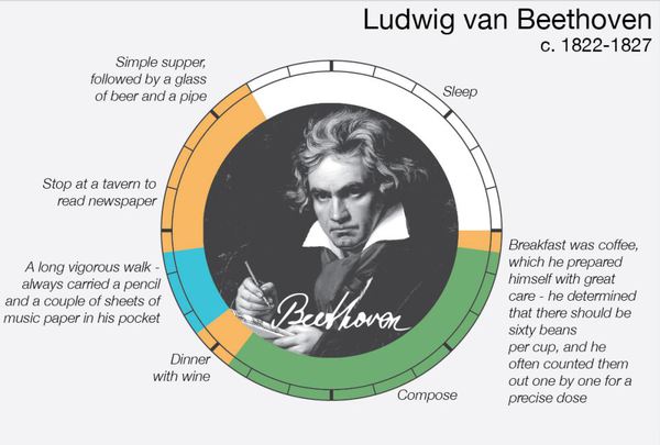 貝多芬:十點睡,六點起床,每天要帶著紙筆散步兩小時。