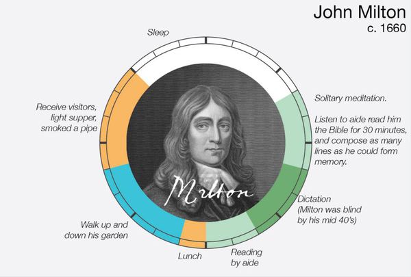 約翰米爾頓:九點睡,四點起床,冥想,聽讀聖經。