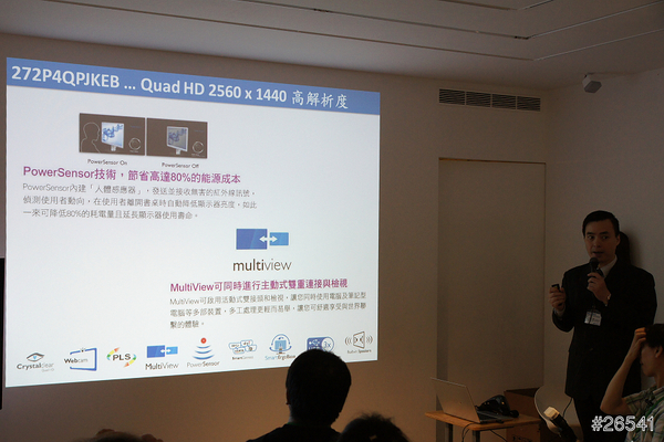 △可以看到螢幕下方會有兩個感應器,這就是 PowerSensor 可以感測使用者是否暫離位子,是否該降低螢幕亮度達到節能效果。
