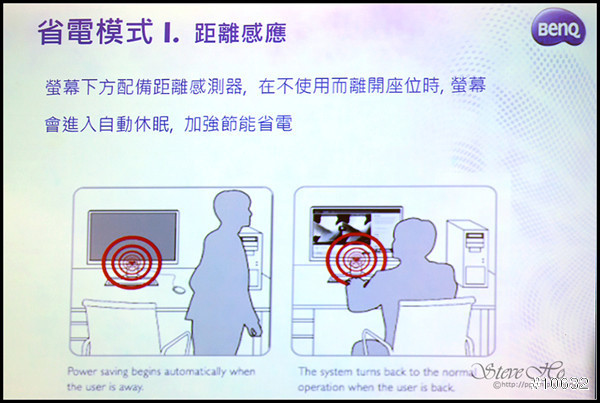 ▼ 螢幕下方配備距離感測器,在不使用而離開座位時,螢幕會進入自動休眠,加強節能省電