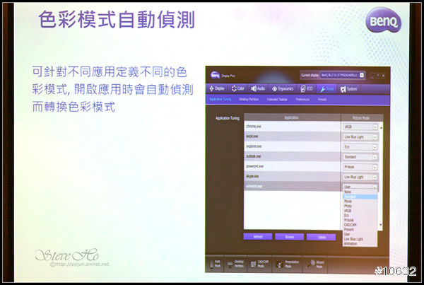▼ 可針對不同應用定義不同的色彩模式,開啟應用時會自動偵測而轉換色彩模式
