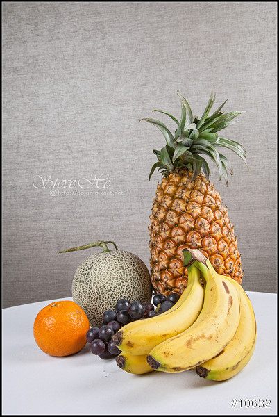 背景也通透明亮,哈密瓜的紋理與鳳梨表皮的細節更豐富更有立體感