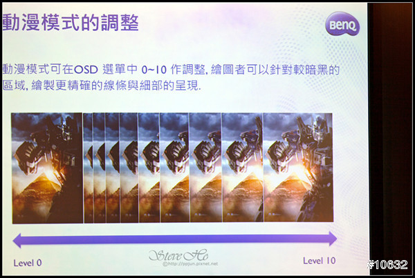 可在OSD選單中0~10作調整,繪圖者可以針對較暗黑的區域,繪製更精確的條條與細部的呈現