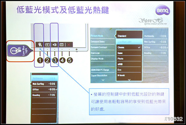 A5:這台是BenQ的秘密武器,有附一個遙控器,用於切換藍光模式和sRGB模式,