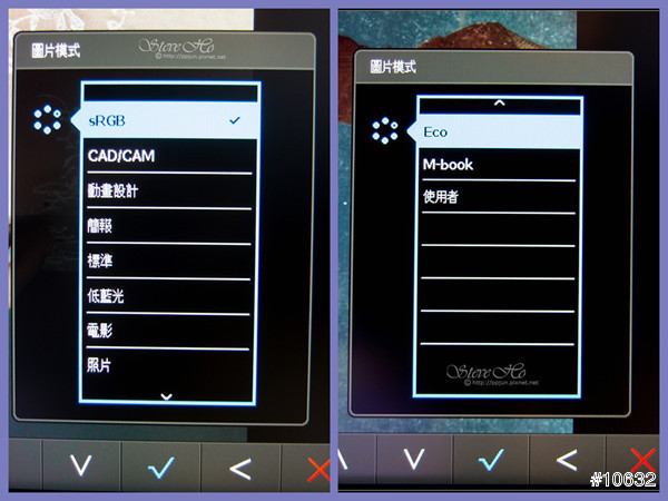 ▼ 其中圖片模式中又有sRGB、CAD/CAM、動畫設計、簡報、標準、低藍光、