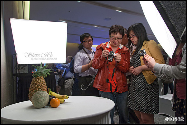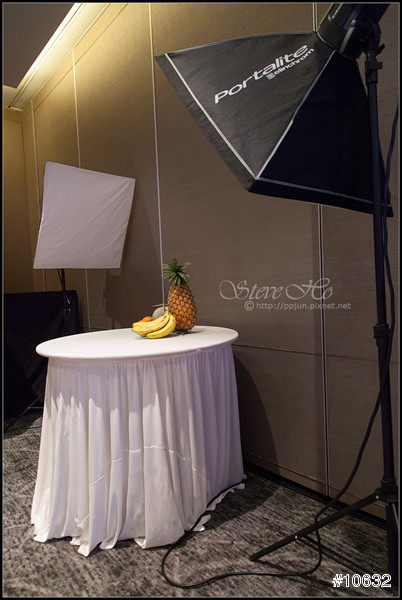 會場後方兩側分別搭建了2個迷你攝影棚,一邊是水果靜物,一邊是Model供大家試拍,
