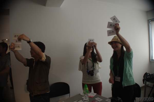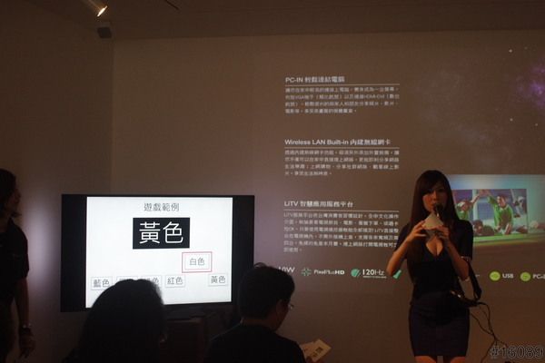 ▼showgirl會出題,每個人手上有六種色卡,要拿出字體顏色,非文字所代表的顏色。