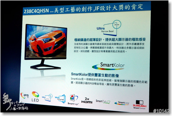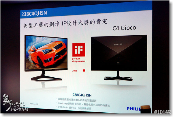 ▲首部介紹的是2013 IF產品設計大獎的美型工藝電腦顯示器:《238C4QHSN》,背後的菱角形設計讓這部GIOCO更具特色。