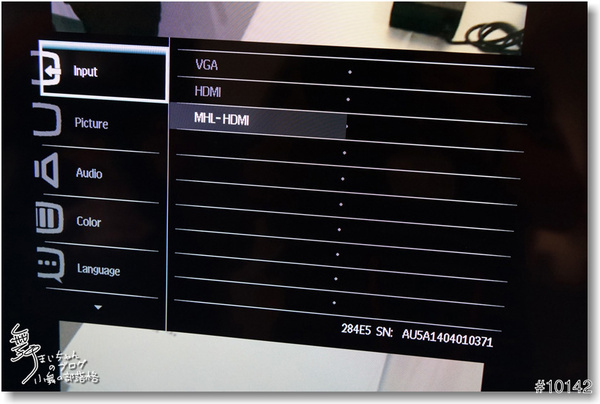▲在輸入端子也僅提供基本的HDMI (數位 HDCP), MHL-HDMI (數位 HDCP), VGA (類比)三種選擇,不過還提供了一組HDMI 音訊輸出孔