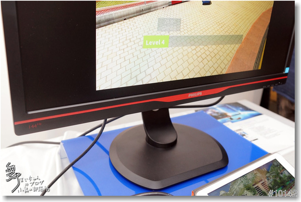 ▲紅色的腰線很搶眼,右下角還特別紅字標示著144Hz來正名這款先進的飛利浦遊戲顯示器畫面刷新率高達每秒 144 次