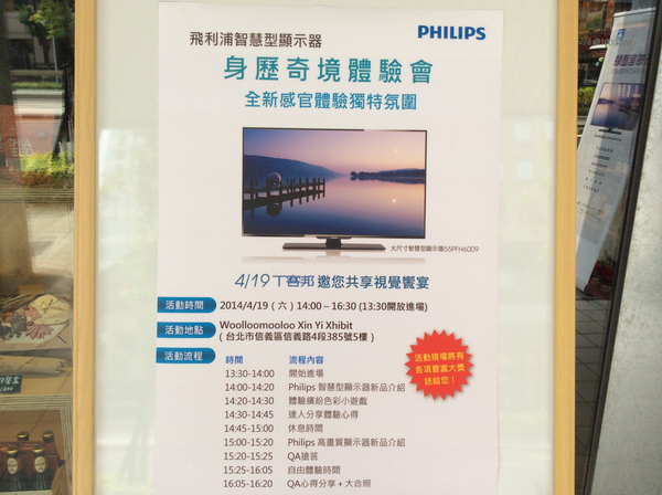 有靈感、電燈泡就會突然亮起,是大家對於創新的印象,而創新更是PHILIPS的核心價值所在。今日在液晶電視與電腦顯示器的市場上,不論國內或國外,很多創新品牌都已崛起,身為液晶電視三巨頭之一的PHILIPS豈可容忍小老弟爬到頭上呢!今天身歷其境的體驗會,不但會場選在有濃濃歐式風格的Woolloomooloo WXY space X展覽空間,更打造出多個產品體驗區域供網友們細細品味,並藉由情境體驗的互動遊戲,現場讓大家親眼見證,無論你在多遠的地方,都能清清楚楚看見PHILIPS 55PFH6009智慧型液晶電視所呈現的鮮明色彩,尤其親身體驗,令筆者印象最深刻的就是Ambilight情境光源及LiTV的服務,前者讓筆者看電視感到溫暖不再冰冷冷的,後者更是筆者生活新知的來源所在。在電腦顯示器方面,SmartTxt技術對我閱讀幫助很大,尤其一篇論文成千上萬的字,若用傳統螢幕看,恐怕真的會眼花;現場顯示器雖然少了玩簡。Simplicity和玩值。Value系列,但擁有MHL技術的機種,體驗後真的蠻心動的,因為提供了4K超高畫質解析度與更寬廣的色域範圍,藉此營造色彩更加繽紛的視覺體驗,並支援HDCP,可確保安全傳輸優質的內容。身歷其境過後,我看見PHILIPS創造出~只有為你~的美麗新視界。