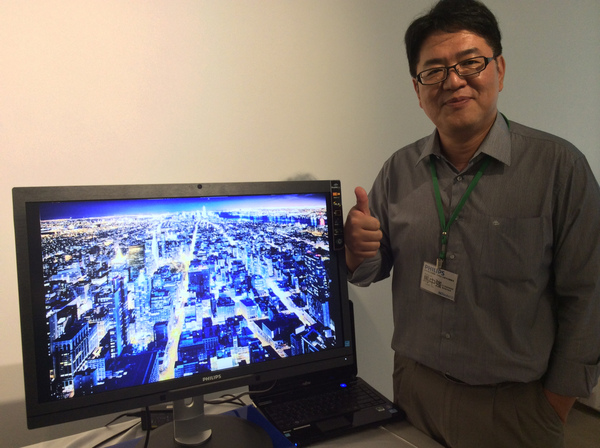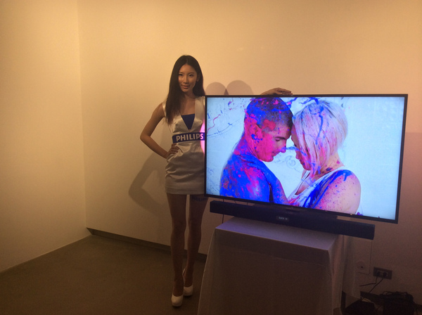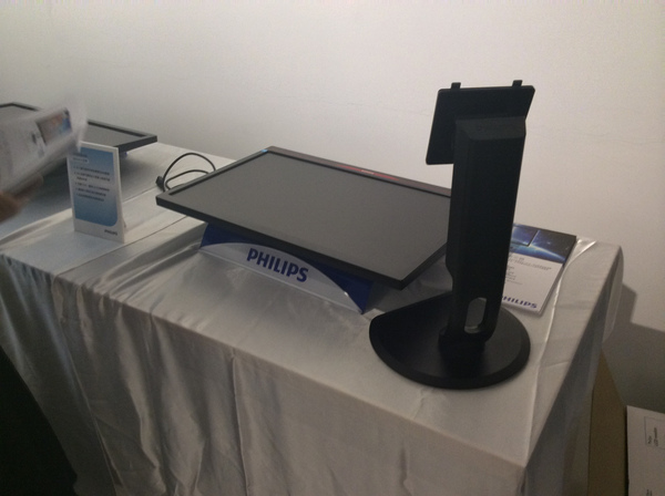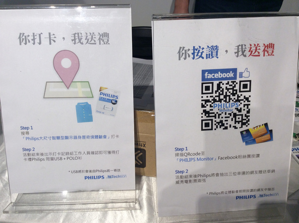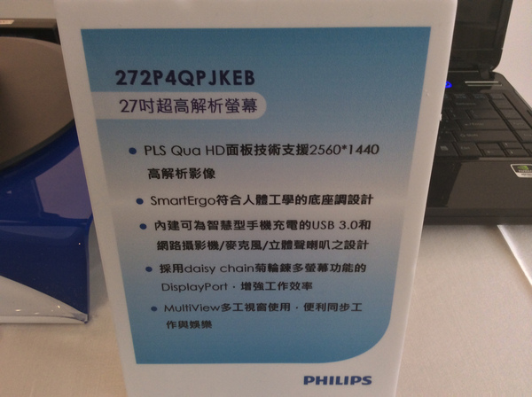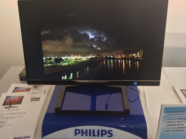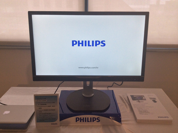 【▼】今日展出的PHILIPS產品除了55吋智慧型顯示器是主角外,並在現場推出了多款電腦螢幕供大家鑑賞。李老師在看板旁表示:讚!