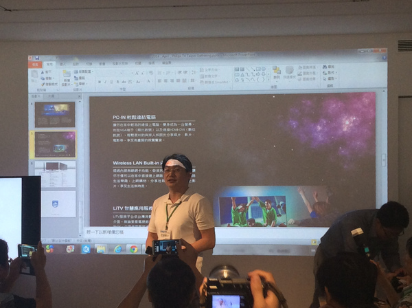 【▼】喔喔,這位大師是誰?竟然可讓左方SG和右邊主持人一致稱讚,原來是3C影音界的佼佼者-李承先李老師,今日體驗會也會有李老師的精闢演說。