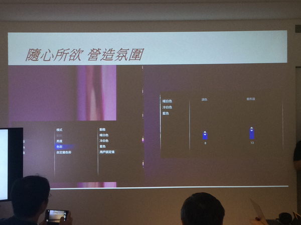 【▼】馬中強先生為大家示範情境光源的特效,可配合周圍牆壁的顏色,打造不同的情境氛圍。