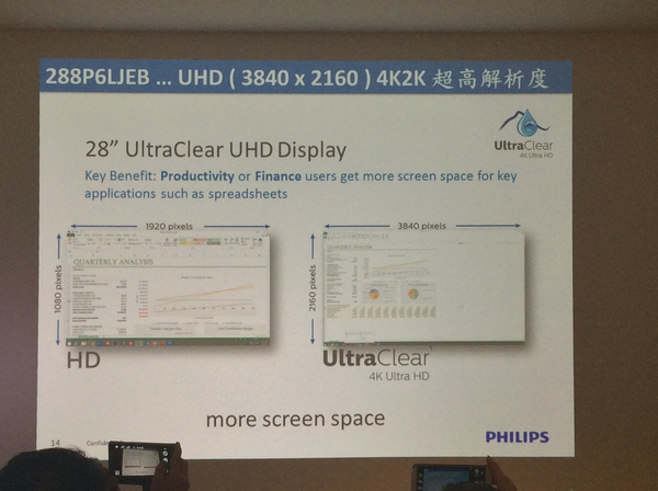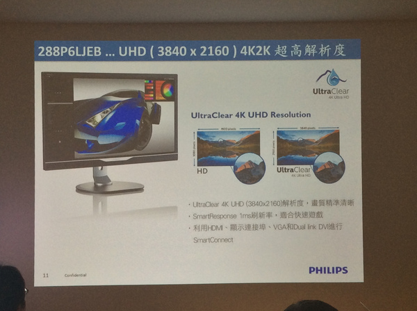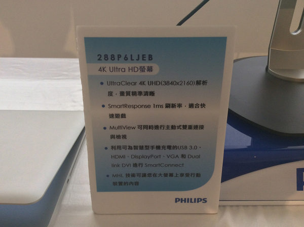 【▼】現場最後一台電腦用顯示器就是型號288P6LJEB,這是一台4K Ultra HD的螢幕,不但解析度高達3840X2160,SmartResponse刷新率快到只有1ms,對於專業工作及遊戲玩家來說,是夢寐以求的3C神物。