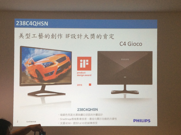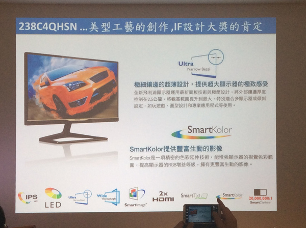 【▼】聽完專家們的介紹與分享,筆者已經受不了想要好好體驗看看,就先從小尺寸的開始吧!首先是型號238C4QHSN的23吋IPS高解析度螢幕。
