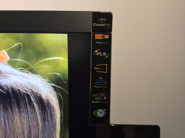 【▼】272P4QPJKEB顯示器右上方貼有各項特點的貼紙,Crystal clear、MultiView PiP/PbP模式都是PHILIPS獨家技術,環保規章也符合TCO 6.0的標準。