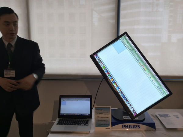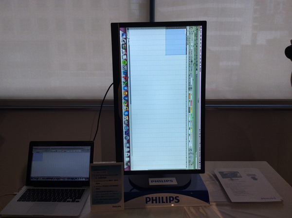 【▼】除了旋轉90度外,其機身真的也還蠻薄的,真的相當搶眼,一時間把現場其他顯示器的眼光全集中到這邊來了!