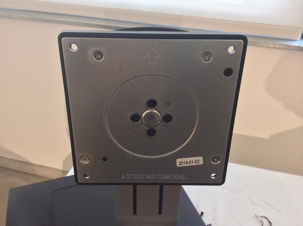 【▼】SmartErgo底座內部一覽,四個角落為固鎖裝置,中間圓形設計就是可讓顯示器旋轉90度的關鍵。