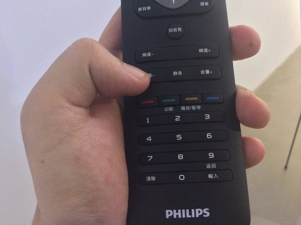 【▼】PHILIPS 55PFH6009智慧型液晶電視專屬遙控器,採紅外線控制,體驗現場因有兩台TV,所以常會不小心切換到另外一台,也可看出遙控器發射與電視接收廣闊範圍的程度。