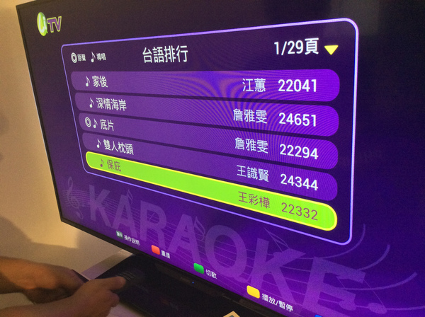【▼】卡拉OK的功能選單,每月只要99元,上千首最新歌曲一次歡唱。