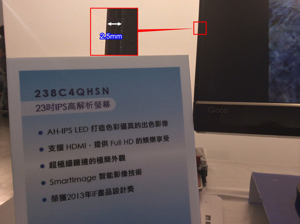 【▼】而窄邊框的設計,也大約一隻手指頭的厚度約1.5cm左右。