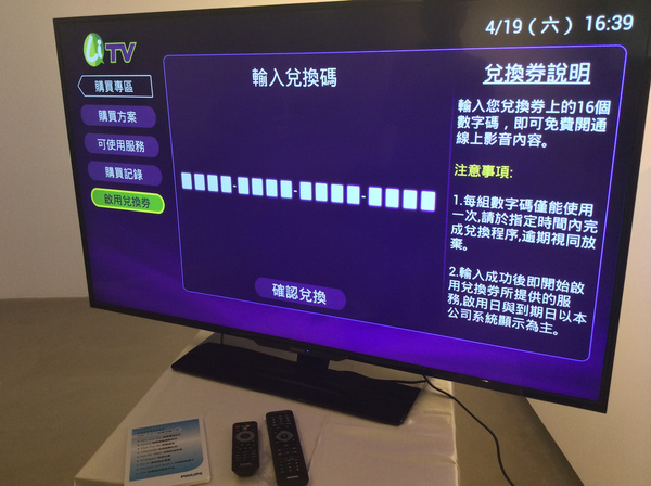 【▼】兌換碼可直接由遙控器輸入,看個人需求來選擇付費的服務。