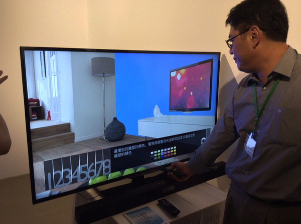 【▼】這位同學很喜歡Ambilight情境光源功能,最後簡短的說出PHILIPS是他心中最棒的品牌。