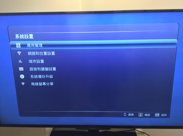 【▼】PHILIPS 55PFH6009智慧型液晶電視系統設置選項,無線網路分享可透過行動裝置推播到大螢幕上,是近來很夯的服務。