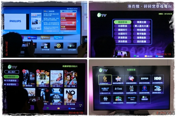 除了基本的電視節目之外,還有卡拉OK、熱門遊戲、股市看盤下單、幼兒教育、線上租片...