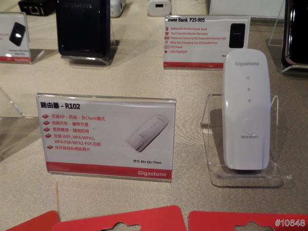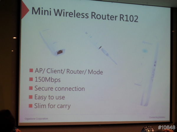 ▼ 無線路由器 R102 (設計輕巧,方便攜帶的超迷你路由器。採用聯發科高效能網路晶片,連線穩定可靠。流線造型,側邊設計三種模式切換開關,可依使用環境快速轉換。操作容易,容易上手,隨插隨用,是外出旅遊,商務考察,以及小型住房/辦公室的無線分享好幫手。) (資料來源 http://www.gigastone.com.tw/index.php?ft=tw/)