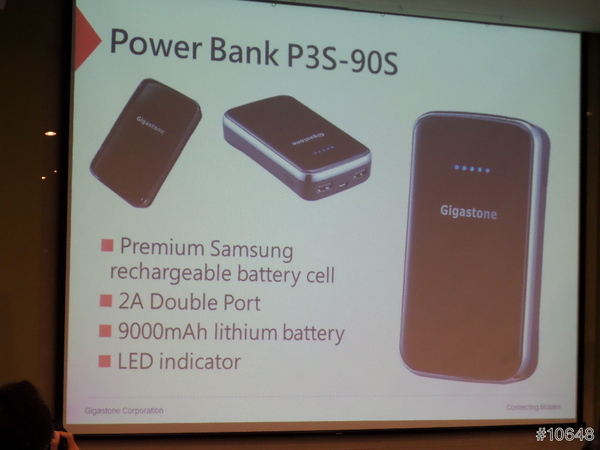 ▼Power Bank 行動電源 P2S-90S (具備兩個USB輸出接孔,可同時為兩台裝置進行充電。最高輸出電力可達2000mA,不論是智慧型手機或平板電腦皆可使用,隨時支援您的電力需求、行動生活不間斷!) (資料來源 http://www.gigastone.com.tw/index.php?ft=tw/)