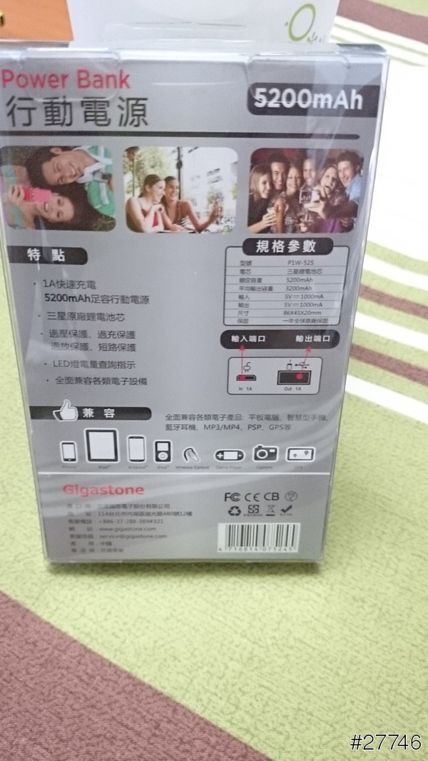 打卡按讚活動禮,Gigastone Power Bank 5200mAh行動電源一個。