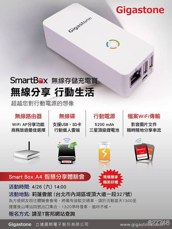 很榮幸被選中參加4/26由Gigastone(立達國際電子)與T客邦聯合舉辦的Gigastone Smart Box A4 智慧分享體驗會。