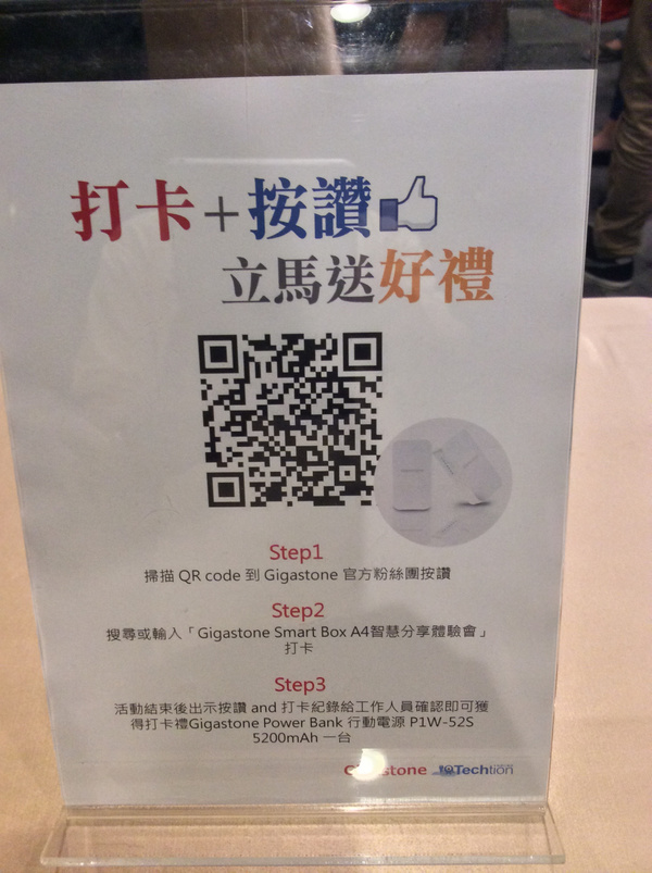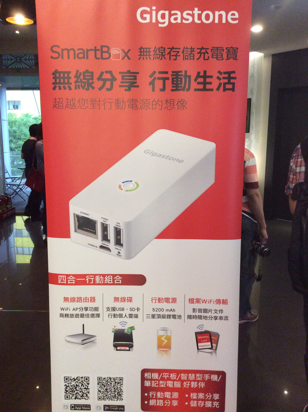 筆者很幸運能參加Gigastone與T客邦舉辦的新品發表會,短短的三個小時內,從產品介紹、達人分享、團康活動到產品體驗,每一個項目都讓現場朋友們驚喜不斷,毫無冷場,其中多合一的Smart Box A4在團康活動中扮演著團結力量大的角色,Gigastone更是大手筆的送了好多大獎出去,筆者雖只拿到打卡禮,但也很開心。Gigastone此次推出四合一行動組合Smart Box A4,會不會和自家的產品 (行動電源和無線路由器) 對打呢?筆者認為倒不至於,以行動電源來說,單一行動電源的話,容量是可以做得更高,但單一行動電源掛點了怎麼辦,只有丟棄或回收一途,而Smart Box A4行動電源就算用久了掛點,其他功能還可以繼續使用,將其他功能繼續發揮到極致;而路由器的部分,Gigastone推出的迷你路由器,價錢更是可以低到500以下,功能一樣強勁,只需要路由器功能的朋友們,這C/P值還真有點高,另外像Gigastone的記憶卡或是隨身碟,這些更是能輔助Smart Box A4成為行動組合的聖戰士。體驗會結束後竟下起大雨,由於燦坤是Gigastone經銷商之一,筆者立馬至對面的燦坤旗艦店找尋Smart Box A4,不過似乎太搶手,竟然補貨中,以下就附上Kuso版Gigastone Smart Box A4趣味宣傳照,搏君一笑吧~