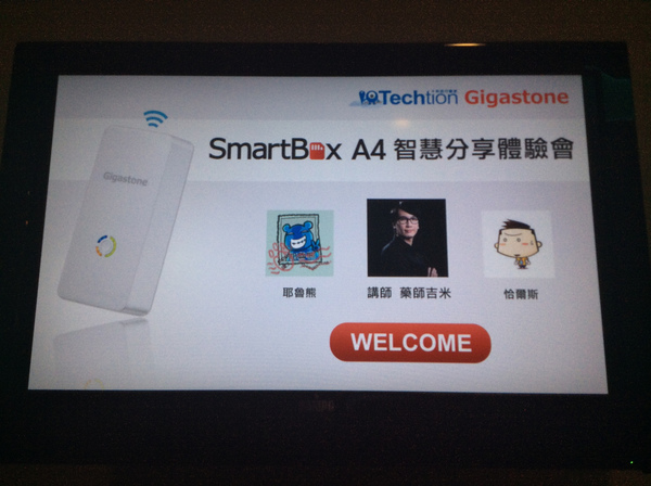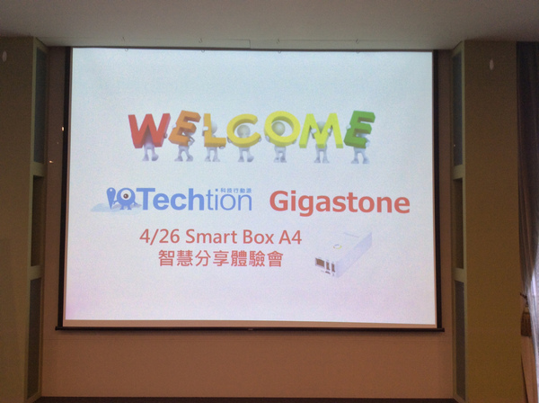 【▼】會場播映著今日Smart Box A4智慧分享體驗會的投影片。