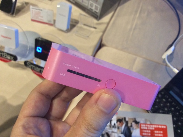【▼】Smart Box A3,內建5200m Ah 行動電源、無線路由器與WiFi行動碟功能,主體下方為不織布網狀設計,相當有質感。