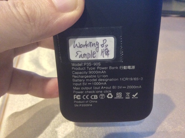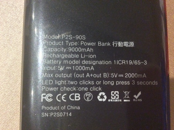 【▼】P2S- 90S行動電源後方產品規格。